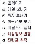 3. 위의 메뉴중 제일 아래 2개 빨간 메뉴는 관리자 전용 메뉴입니다. 3. 관리자 전용메뉴는 글쓴이에 대해서 추적하거나 불량 회원으로 판단, 레벨 변경등을 할때 바로 해당 3. 페이지로 이동할수 있으므로 매우 편합니다. |